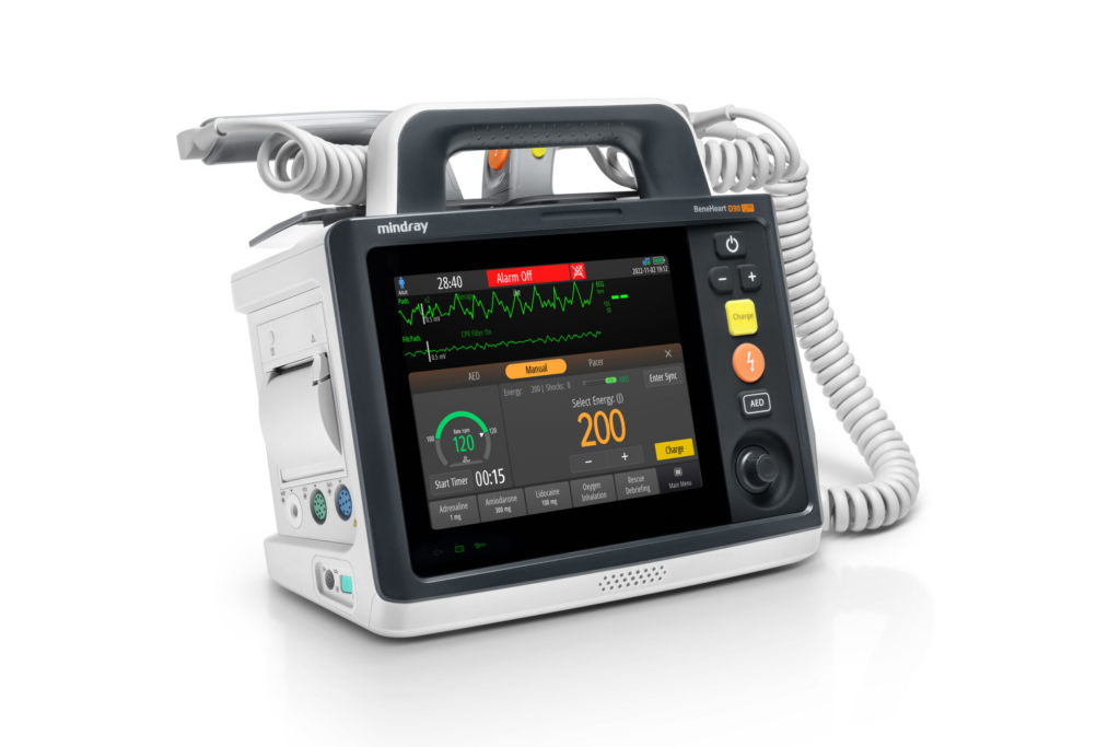 The BeneHeart D30 device is a lightweight and portable defibrillator-monitor that provides four operating modes: monitor, manual, AED, and pacemaker.